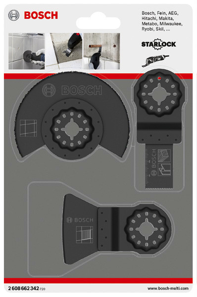 Das dreiteilige Fliesen-Basis-Set mit den Top-Starlock-Zubehören für Fliese und Bad Die Starlock-Zubehöre wurden sorgfältig für grundlegende Arbeiten an Fliese und Bad ausgewählt Die drei Blätter von Starlock ermöglichen das Ausfräsen von Fliesenfugen, das Abschaben von Mörtel und Tauchschnitte in Holz und ungehärtetes Metall. Diese Starlock-Zubehöre sind besonders geeignet für das Ausfräsen von Fliesenfugen, das Anfertigen kleinerer Ausschnitte in weiche Wandfliesen, das Abschaben von Mörtel sowie für Tauchschnitte in Kupfer. Das Starlock-Aufnahmesystem ermöglicht ?einen schnellen Blattwechsel ohne Blattberührung in drei Sekunden.? Das Starlock-Aufnahmesystem ermöglicht durch seine dreidimensionale enge Passung maximale Kraftübertragung zwischen Maschine und Zubehör.