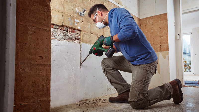 Akku-Bohrhammer UniversalHammer 18V. Kabelfrei und multifunktional: Bohren, Hammerbohren, Meißeln und Schrauben. Kompaktes, handliches Design für beeindruckende 4-in-1-Leistung. Pneumatisches Hammerwerk mit 2,0 J zum Bohren bis 16 mm Durchmesser und Meißeln in Beton. SDS plus-Universalbohrfutter für einen leichten, werkzeuglosen Wechsel von Bohrern und Meißeln. Vibration Control und Rotation Control sorgen für eine sicherere Handhabung und geringere Ermüdung. POWER FOR ALL ALLIANCE: 1 Akku, 10+ Marken, 150+ Produkte. 2 x Akku PBA 18V 2.5Ah. Ladegerät AL 18V-20. Tiefenanschlag. Zusatzhandgriff. Tragekoffer