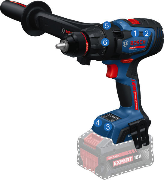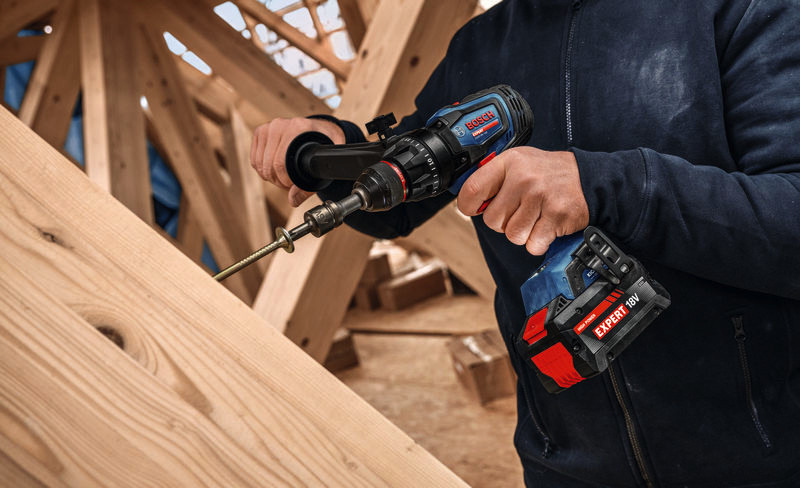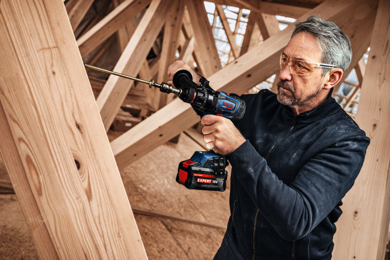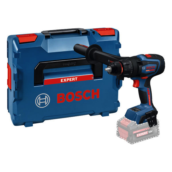 Akku-Bohrschrauber EXSR18V-150, Der EXPERT EXSR18V-150 ist der überragende Bohrschrauber mit einzigartiger Leistung und Kontrolle für verschiedenste Schraub- und Bohrarbeiten. Er ist die perfekte Wahl für extrem schnelle Arbeitsfortschritte dank eines bürstenlosen Motors mit BITURBO-Technologie, außergewöhnlich leistungsstarker EXPERT-Akkus und eines maximalen Drehmoments von 150 Nm. KickBack Control minimiert das Verletzungsrisiko bei blockierendem Bohrer diese Funktion kann ein- und ausgeschaltet werden. Präzise Electronic Angle Detection sorgt für den richtigen Winkel von langen Schrauben. Dank 13-mm-Metallbohrfutter und Metallgetriebe ist der Bohrschrauber extrem zuverlässig und robust. Er besitzt einen Zusatzhandgriff, der mühelos auf jede Position eingestellt werden kann. Die schnelle Modusauswahl ermöglicht den einfachen Wechsel zwischen Bohren und Schrauben. Der EXPERT EXSR18V-150 liefert optimale Ergebnisse beim Bohren und Schrauben in Holz oder Metall, speziell bei großen Durchmessern, z. B. Lochsägen bis zu 150 mm. Kompatibel mit dem Bosch Professional 18V-System und mit der markenübergreifenden AMPShare-Akku-Allianz. Zusatzhandgriff. Einlage für L-BOXX 136. L-BOXX 136 (1 600 A01 2G0)