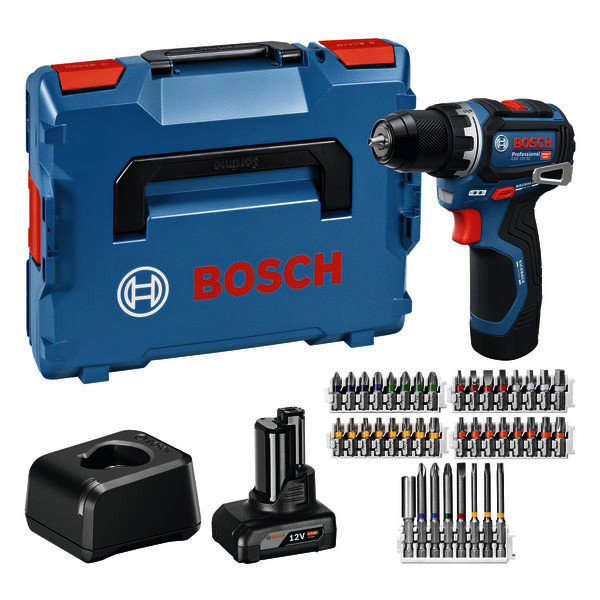 Akku-Bohrschrauber GSR 12V-32, Der kabellose GSR 12V-32 Professional bietet mit Advanced KickBack Control beste Werkzeugkontrolle. Diese Technologie minimiert die Verletzungsgefahr, wenn ein Bohrer abrupt klemmt oder selbst wenn sich das Werkzeug langsam um seine Bohrachse dreht und die Haltekraft langsam zunimmt. Mit einer Kopflänge von 142 mm und einer Höhe von 160 mm ist das Werkzeug äußerst kompakt und macht das Bohren oder Schrauben auch an engen oder schwer zugänglichen Stellen einfach. Außerdem ist wiederholtes Arbeiten mit diesem leichten Bohrschrauber, der nur 0,7 kg wiegt, weniger anstrengend. Der GSR 12V-32 Professional eignet sich für alle Arten von Schraub- und Bohranwendungen in Holz und Metall. Zusätzliche Informationen: Der GSR 12V-32 Professional ist mit Advanced KickBack Control, einem bürstenlosen Motor, einem robusten Metallfutter, einem hellen Arbeitslicht und einem Gürtelclip ausgestattet. 1 x Akku GBA 12V 2.0Ah (1 600 Z00 02X). 1 x Akku GBA 12V 4.0Ah (1 600 Z00 02Y). Ladegerät GAL 12V-20 Professional. 40-teiliges Zubehör. L-BOXX 102