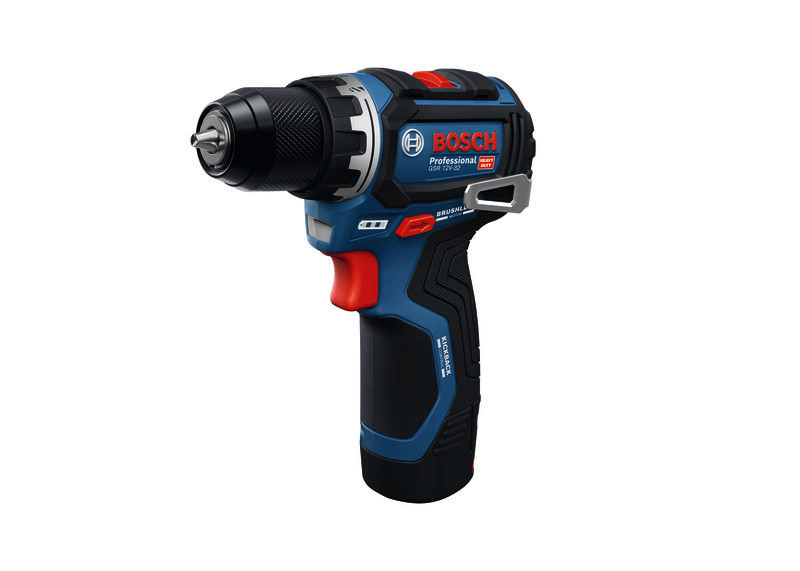 Akku-Bohrschrauber GSR 12V-32, Der kabellose GSR 12V-32 Professional bietet mit Advanced KickBack Control beste Werkzeugkontrolle. Diese Technologie minimiert die Verletzungsgefahr, wenn ein Bohrer abrupt klemmt oder selbst wenn sich das Werkzeug langsam um seine Bohrachse dreht und die Haltekraft langsam zunimmt. Mit einer Kopflänge von 142 mm und einer Höhe von 160 mm ist das Werkzeug äußerst kompakt und macht das Bohren oder Schrauben auch an engen oder schwer zugänglichen Stellen einfach. Außerdem ist wiederholtes Arbeiten mit diesem leichten Bohrschrauber, der nur 0,7 kg wiegt, weniger anstrengend. Der GSR 12V-32 Professional eignet sich für alle Arten von Schraub- und Bohranwendungen in Holz und Metall. Zusätzliche Informationen: Der GSR 12V-32 Professional ist mit Advanced KickBack Control, einem bürstenlosen Motor, einem robusten Metallfutter, einem hellen Arbeitslicht und einem Gürtelclip ausgestattet. L-BOXX 102
