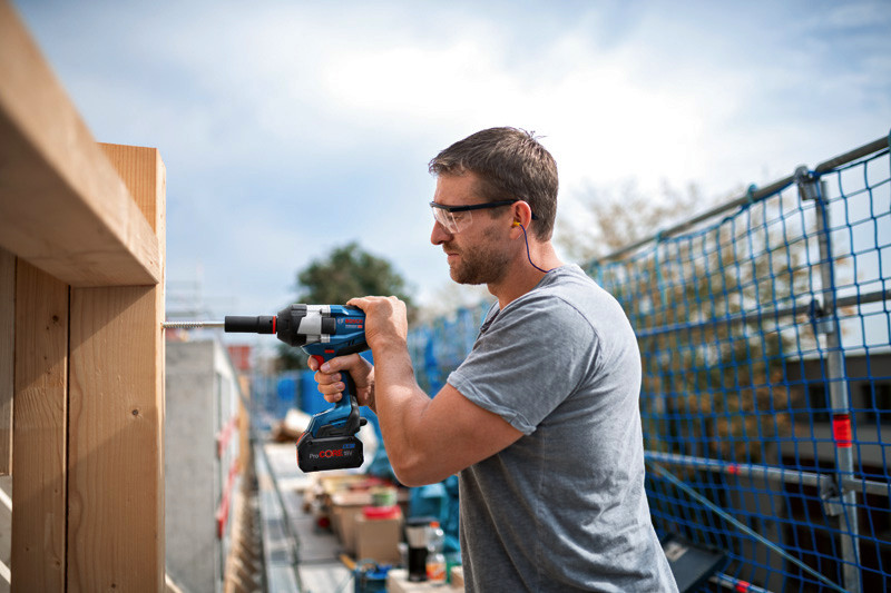 Akku-Drehschlagschrauber GDS 18V-1050 H, Der GDS 18V-1050 H Professional ist der herausragende 3/4"-Drehschlagschrauber mit bürstenlosem Motor für größte Anwendungsvielfalt. Seine BITURBO Brushless-Technologie kombiniert die Leistung eines Kabelgeräts mit kabelloser Freiheit, optimiert für ProCORE18V-Akkus. Bei schwierigen Anwendungen bietet das neue Schlagwerk ein Anziehmoment von 1.050 Nm und ein Losbrechmoment von 1.700 Nm für besonders anspruchsvolle Arbeitsumgebungen. Hohe Vielseitigkeit bei der Leistungskontrolle wird durch die 3 Geschwindigkeits-/Drehmomentstufen gewährleistet, die eine Anpassung an die jeweiligen Arbeitsanforderungen erlauben. Die Hauptanwendungsbereiche des GDS 18V-1050 H Professional sind Metallanwendungen (M 10 M 24) wie Stahlbaukonstruktionen, Metallverbindungen, Rohrmontage, LKW-Instandhaltung und Holzkonstruktionen. Er ist kompatibel mit allen Bosch Professional 18V-Akkus und -Ladegeräten (Professional 18V System). für maximale Leistung ProCORE18V ? 5,5 Ah verwenden. Auch kompatibel mit AMPShare, der markenübergreifenden Akku-Allianz. Der GDS 18V-1050 H Professional bietet zusätzliche Annehmlichkeiten wie ECP, EMP, eine Werkzeugstatusanzeige, LED-Licht, eine 3/4"-Werkzeugaufnahme mit Sprengring plus Sicherungsbohrung und einen Aufbewahrungsclip. L-BOXX 136 (1 600 A01 2G0). 1/1 L-BOXX-Einlage für Gerät und Ladegerät (1 600 A02 58Y). Leiterclip (1600 A02 3G7)