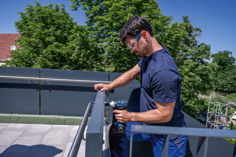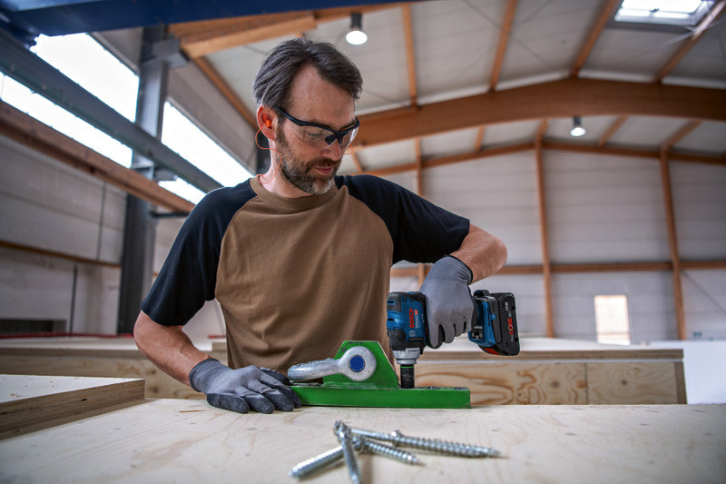 Akku-Drehschlagschrauber GDS 18V-330 HC, Der kompakte und leichte Akku-Drehschlagschrauber GDS 18V-330 HC Professional erleichtert die Arbeit. Zwei Standardbetriebsarten am User Interface (Metallschrauben/Muttern (A) und Holzschrauben (B)) sorgen für eine kontrollierte Anwendung und verhindern gebrochene Schraubenköpfe und den Verlust von Metallschrauben oder -muttern, indem der Drehschlagschrauber verlangsamt oder abschaltet. Jede Betriebsart kann über die Bosch Toolbox App bequem für die jeweilige Anwendung eingestellt werden. Anziehmoment von 330 Nm und Losbrechmoment von 560 Nm liefern Höchstleistung. Höhere Flexibilität und Kontrolle dank drei Geschwindigkeits-/Drehmomentstufen. Der Drehschlagschrauber ist ideal für Metallwerkstätten/Schlosser, Industriemontage, Rahmenbau und Fahrzeuginstandhaltung bei der Verwendung von Metallschrauben/Muttern von M8 bis M18. Das Gerät ist kompatibel mit allen Bosch Professional 18V-Akkus und -Ladegeräten (Professional 18V System). Auch kompatibel mit AMPShare, der markenübergreifenden Akku-Allianz. Der GDS 18V-330 HC Professional verfügt für zusätzlichen Komfort über eine Werkzeugstatusanzeige, ein LED-Licht und einen Gürtelclip. 2 x Akku GBA 18V 5.0Ah (1 600 A00 2U5). Schnellladegerät GAL 18V-40 Professional (1 600 A01 9RJ). L-BOXX 136 (1 600 A01 2G0). 1/1 L-BOXX-Einlage (1 600 A02 DG5)