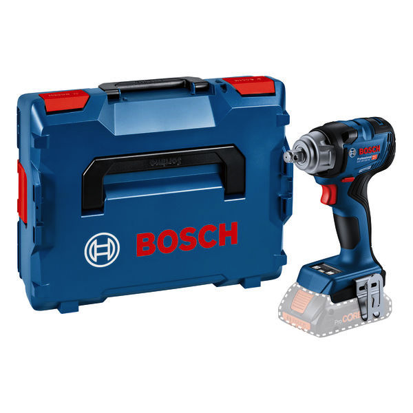 Akku-Drehschlagschrauber GDS 18V-330 HC, Der kompakte und leichte Akku-Drehschlagschrauber GDS 18V-330 HC Professional erleichtert die Arbeit. Zwei Standardbetriebsarten am User Interface (Metallschrauben/Muttern (A) und Holzschrauben (B)) sorgen für eine kontrollierte Anwendung und verhindern gebrochene Schraubenköpfe und den Verlust von Metallschrauben oder -muttern, indem der Drehschlagschrauber verlangsamt oder abschaltet. Jede Betriebsart kann über die Bosch Toolbox App bequem für die jeweilige Anwendung eingestellt werden. Anziehmoment von 330 Nm und Losbrechmoment von 560 Nm liefern Höchstleistung. Höhere Flexibilität und Kontrolle dank drei Geschwindigkeits-/Drehmomentstufen. Der Drehschlagschrauber ist ideal für Metallwerkstätten/Schlosser, Industriemontage, Rahmenbau und Fahrzeuginstandhaltung bei der Verwendung von Metallschrauben/Muttern von M8 bis M18. Das Gerät ist kompatibel mit allen Bosch Professional 18V-Akkus und -Ladegeräten (Professional 18V System). Auch kompatibel mit AMPShare, der markenübergreifenden Akku-Allianz. Der GDS 18V-330 HC Professional verfügt für zusätzlichen Komfort über eine Werkzeugstatusanzeige, ein LED-Licht und einen Gürtelclip. L-BOXX 136 (1 600 A01 2G0). 1/1 L-BOXX-Einlage (1 600 A02 DG5). 1 x Bluetooth Low Energy Modul GCY 42 Professional (1 600 A01 3WF)
