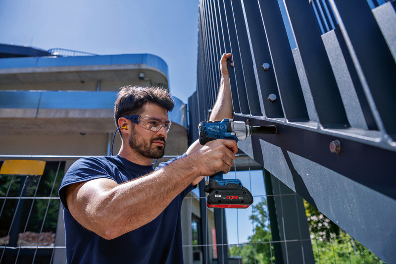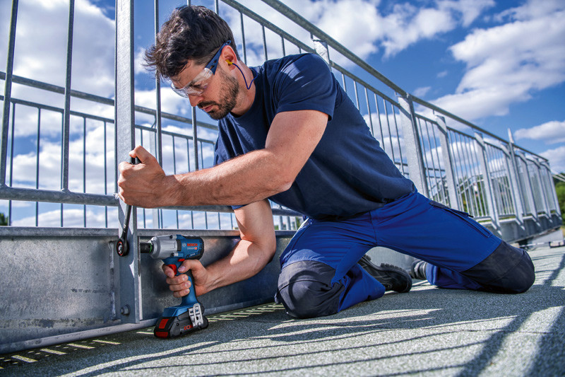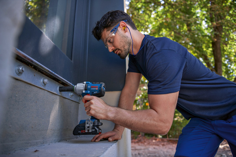 Akku-Drehschlagschrauber GDS 18V-450 HC, Arbeitserleichterung mit dem Akku-Drehschlagschrauber GDS 18V-450 HC Professional. Zwei Standardbetriebsarten am User Interface (Metallsschrauben/Muttern (A) und Holzschrauben (B)) sorgen für eine kontrollierte Anwendung und verhindern gebrochene Schraubenköpfe und den Verlust von Metallschrauben oder -muttern, indem der Drehschlagschrauber verlangsamt oder abschaltet. Jede Betriebsart kann über die Bosch Toolbox App bequem für die jeweilige Anwendung eingestellt werden. Anziehmoment von 450 Nm und Losbrechmoment von 800 Nm liefern Höchstleistung. Höhere Flexibilität und Kontrolle dank drei Geschwindigkeits-/Drehmomentstufen. Der Drehschlagschrauber ist ideal für Metallwerkstätten/Schlosser, Industriemontage, Rahmenbau und Fahrzeuginstandhaltung bei der Verwendung von Metallschrauben/Muttern von M10 bis M20. Das Gerät ist kompatibel mit allen Bosch Professional 18V-Akkus und -Ladegeräten (Professional 18V System). Auch kompatibel mit AMPShare, der markenübergreifenden Akku-Allianz. Der GDS 18V-450 HC verfügt für zusätzlichen Komfort über eine Werkzeugstatusanzeige, ein LED-Licht und einen Gürtelclip. 2 x Akku ProCORE18V 4.0Ah (1 600 A01 6GB). Schnellladegerät GAL 18V-40 Professional (1 600 A01 9RJ). L-BOXX 136 (1 600 A01 2G0). 1/1 L-BOXX-Einlage (1 600 A02 DG5). 1 x Bluetooth Low Energy Modul GCY 42 Professional (1 600 A01 3WF)