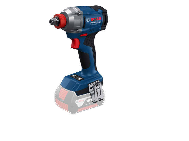 Akku-Drehschlagschrauber GDX 18V-285, Ob im Freien oder im Haus: Das Transportieren und Tragen mehrerer Werkzeuge ist mühsam. Der 2-in-1 GDX 18V-285 vereinfacht dies, da zum Drehen von Schrauben und Bolzen nur ein Werkzeug benötigt wird. Dieses kraftvolle Werkzeug erzeugt ein Drehmoment von 285 Nm und kann Bolzen bis M18 festziehen. Die 2 Drehzahlstufen ermöglichen eine optimale Anpassung von Drehzahl und Drehmoment an die Anwendung. Der 2-in-1-Schlagschrauber GDX 18V-285 optimiert durch sein hohes Drehmoment und die Drehzahlauswahl die Schraubleistung an M8-, M10- und M12-Bolzen. Dieses Werkzeug kann auch zum Drehen von Schrauben verwendet werden, mit selbstschneidenden Schrauben mit 4,2 und 4,8 mm Durchmesser in Blech, mit Holzschrauben mit 4 mm, 5 mm und 8 mm sowie mit M6-, M8- und M10-Schenkelhalsschrauben. 1 x Gürtelclip (1 619 PS0 752). 1 L-BOXX-Koffer