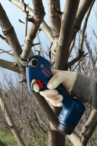 Akku-Gartenschere GGP 12V-25, Lerne die Astschere GGP 12V-25 Professional kennen, deine erste Wahl für kraftvolles und dennoch leichtes Schneiden. Ihr bürstenloser Motor treibt Klingen aus Edelstahl an, um Äste mit einer Dicke von bis zu 25 mm mühelos zu schneiden. Mit einem Gewicht von nur 0,83 kg ohne Akku bietet diese Astschere eine hervorragende Schnittleistung, ohne bei längerem Gebrauch Beschwerden zu verursachen. Das ergonomische Design sorgt dafür, dass du stundenlang ohne Anstrengung schneiden kannst, womit sie perfekt für effizientes und komfortables Arbeiten ist. Diese Akku-Astschere ist ideal zum Schneiden von Sträuchern, Büschen und Obstbäumen. Die GGP 12V-25 Professional ist mit dem Bosch 12V Pro Akku kompatibel, sodass du sie problemlos in deinen bestehenden Werkzeugbestand integrieren kannst. Der leistungsstarke 12V-Akku (3,0 Ah) liefert bis zu 4.500 Schnitte mit einer einzigen Akkuladung und sorgt dafür, dass du deine Gartenaufgaben ohne Unterbrechung bewältigen kannst. Die GGP 12V-25 Professional verfügt außerdem über Autosleep- und Auto-Off-Funktionen, die die Akkulaufzeit und Sicherheit erhöhen. Karton