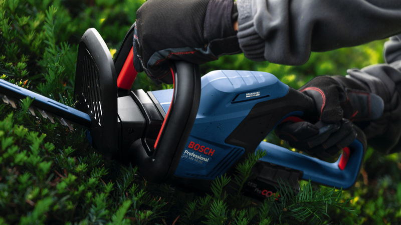 Akku-Heckenschere GHE 18V-50 (II), Wer nach einer leistungsstarken und dennoch leichten Heckenschere sucht, die bequemes Arbeiten über viele Stunden ermöglicht, für den ist die akkubetriebene Bosch Heckenschere GHE 18V-50 (II) genau das Richtige. Der leistungsstarke bürstenlose Motor liefert 2.800 Hübe pro Minute für hohe Schnittleistung über eine lange Laufzeit. Dieses Gerät erleichtert das Schneiden von dicken Ästen und verhindert dank der 50 cm langen Klinge und dem patentierten Bosch Anti-Blockier-System ein Verklemmen. Weiteres Plus: Das zusätzliche Schwungrad ermöglicht gleichmäßigeres Trimmen mit noch weniger Kraftaufwand. Mit einem Gewicht von nur 2,9 kg und einer optimalen Balance ist dieses ergonomische Werkzeug leicht zu handhaben und reduziert die Belastung beim Schneiden über längere Zeit. Die Bosch Heckenschere GHE 18V-50 (II) Professional eignet sich ideal zum Schneiden und Trimmen von Hecken, an der Krone ebenso wie an den Seitenflächen. Die Heckenschere GHE 18V-50 (II) Professional von Bosch wird mit einem 50 cm langen Schwert geliefert, hat einen Zahnabstand von 23 mm zum Schneiden dickerer Äste und ist mit dem Bosch Professional 18V System und mit der AMPShare Akku-Allianz kompatibel.