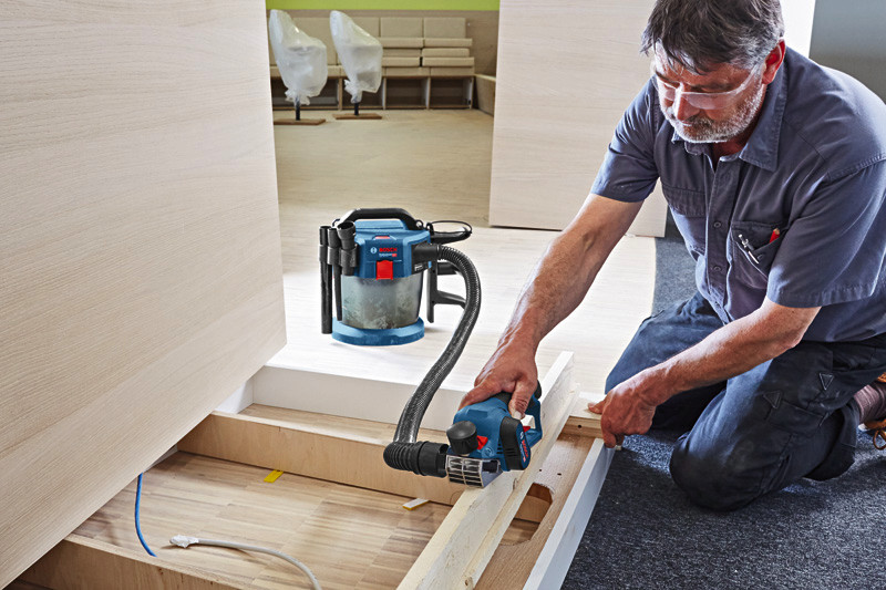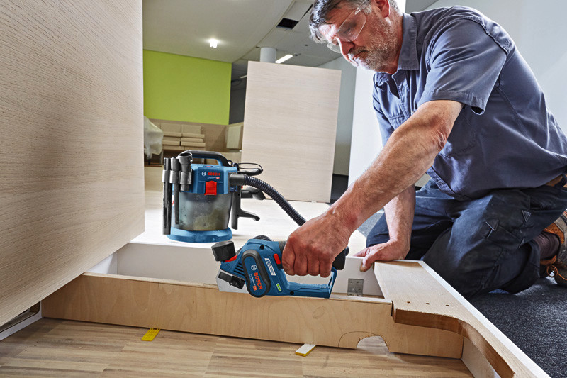 Akku-Hobel GHO 12V-20, Dieses Gerät bietet als erster 12-Volt-Akku-Hobel seiner Art einen neuen Standard in der Werkzeugführung. Der optimierte Schwerpunkt sorgt für eine komfortable und ergonomische Handhabung. Der bürstenlose EC-Motor und das 12-Volt-Akkusystem ermöglichen eine kompakte Bauform. In Verbindung mit der kabellosen Flexibilität ergibt dies beste Bedienbarkeit in jeder Arbeitsposition. Dieses Elektrowerkzeug eignet sich für das Hobeln von Holz. Es ist kompatibel mit allen Bosch Professional 12V-Akkus und -Ladegeräten (Professional 12V System) sowie Staubbeuteln und dem Bosch Click?&?Clean-Staubabsaugsystem. Dieser Hobel verfügt außerdem über eine Wood Razor Klinge. L-BOXX 136 (1 600 A01 2G0). Schnellladegerät GAL 12V-40 Professional (1 600 A01 9R3). 2 x Hobelmesser, 56 x 5,5 x 1,1 mm (2 608 000 672). 2 x Akku GBA 12V 3.0Ah (1 600 A00 X79)