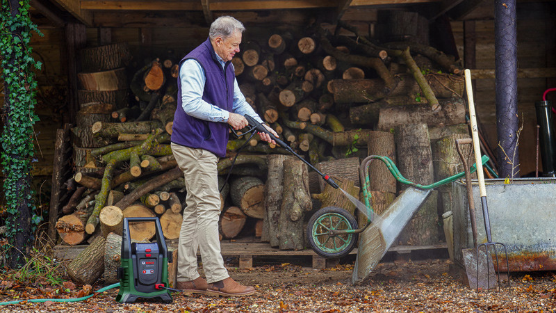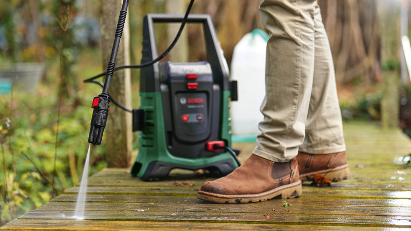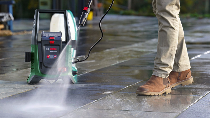 Akku-Hochdruckreiniger UniversalAquatak 36V-100. Der kraftvolle Akku-Hochdruckreiniger für Reinigungsarbeiten zu Hause oder unterwegs. Bequemes, kabelfreies Hochdruckreinigen mit 36 V. Leistungsstarker Hochdruckreiniger mit effizientem Wasserverbrauch. Selbstansaugfunktion für die Nutzung externer Wasserquellen. Vielseitige Reinigung mit 2 Druckstufen und 3-in-1-Düse. Kompaktes Design für mühelosen Transport und praktische Lagerung. Syneon Technology für optimale Kraft und maximale Laufzeit. Kompatibel mit Bosch 36V POWER FOR ALL-Akku. 1 x Akku 36V 4,0Ah. Ladegerät AL 36V-20. Karton