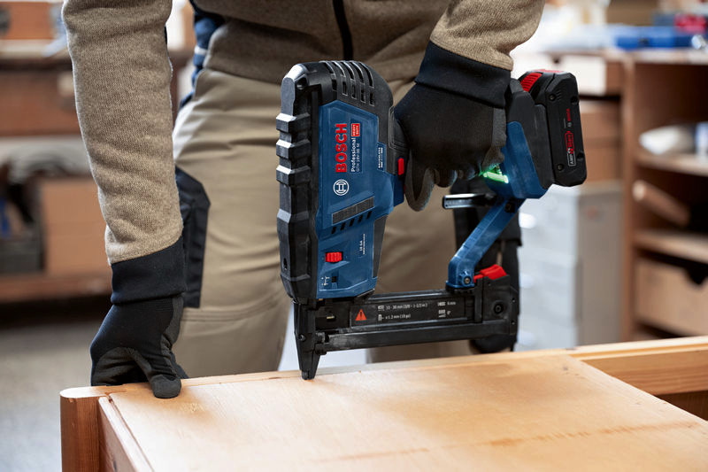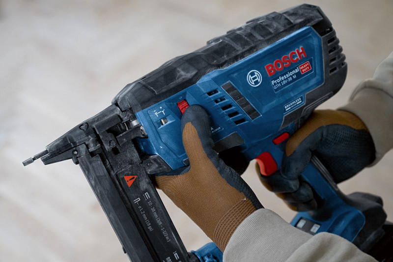 Akku-Holzklammerer GTH 18V-38 M, Professionelle Handwerker möchten Klammern effizient und ohne zu große Belastung für Hand und Arm eintreiben. Wir haben den leistungsstarken, bürstenlosen GTH 18V-38 M Professional mit einem sehr geringen Rückschlag entwickelt, der das Handgelenk schont. Außerdem haben wir darauf geachtet, dass der Schmalrückenklammerer sich einhändig einschalten und bedienen lässt. Der GTH 18V-38 M Professional bietet die volle Leistung eines Druckluftgerätes, aber frei von Kompressor, Gaskartusche oder Kabel. Ideal für die Montage von Decken- und Bodenpaneelen mit Nut- und Federverbindung (verdeckte Nagelung), von Möbelrückwänden, Polstern, Zäunen aus Draht oder dünnen Latten, Holzgittern und Schalldämmungen. Kompatibel mit dem Bosch Professional 18V System und mit der markenübergreifenden AMPShare Akku-Allianz. Mit einhändig bedienbarem Ein-/Aus-Schalter, HMI mit Service-Warnung, Einzel- und Kontaktauslösung, benutzerfreundlicher stufenloser Tiefeneinstellung, Trockenschuss-Sperre, Doppel-LED, großem Sichtbereich an der Kontaktspitze. Geeignet für folgende Klammern: 9,5-38 mm, Rücken 5,8 mm, 18 ga (1,2 mm), und 0° Magazinwinkel. L-BOXX 238 (1 600 A01 2G2)