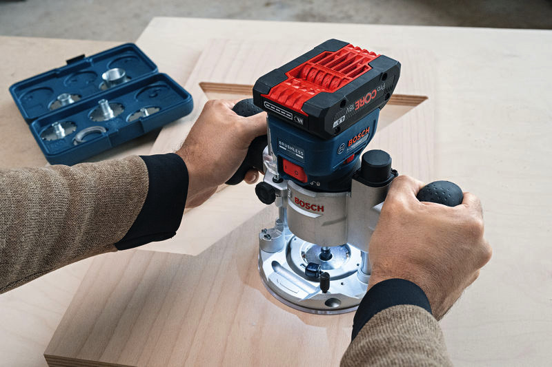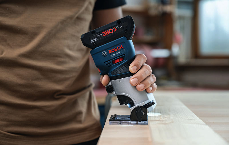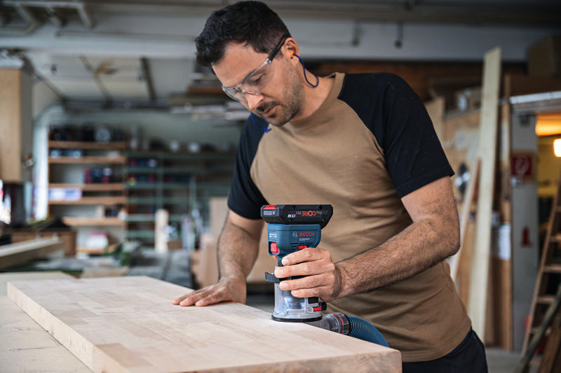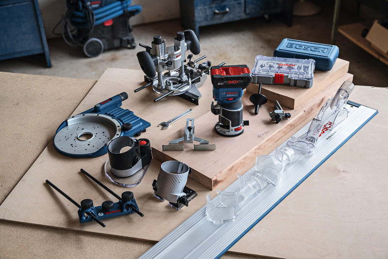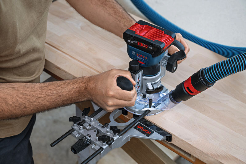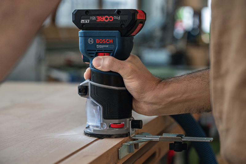 Akku-Kantenfräse GKF 18V-8, Sie kombiniert die Vorteile von High-End-Funktionen, einem kraftvollen bürstenlosen Motor und Kompatibilität mit verschiedensten Zubehören, die allen Aspekten des Kantenfräsens gerecht werden, von leichter Kantenprofilierung bis zu anspruchsvollerem Fräsen von Oberflächen. Diese 18V-Kantenfräse hat die geringste Höhe auf dem Markt für weniger Gewicht und ausgezeichnete Werkzeugkontrolle, eine handfreie Spindelarretierung für problemlosen Fräserwechsel und eine Schnitttiefen-Feineinstellung für ein überragendes Fräserlebnis. Darüber hinaus ist die GKF 18V-8 die weltweit einzige 18V-Kantenfräse mit zweckgerichteter Oberfläche und speziellen Saugadaptern für eine hocheffiziente Staubabsaugung in allen Situationen. Parallelanschlag (2 608 000 331). Absaugadapter für Oberflächenfräsen (2 608 190 061). Absaugadapter für Kantenfräsen (2 608 190 062). Spanschutz (2 608 190 065). L-BOXX 136 (1 600 A01 2G0). L-BOXX-Einlage (1 600 A03 51W). Spannzange mit Überwurfmutter 8 mm (2 608 570 134). Spannschlüssel 17 mm (2 609 110 438)