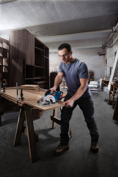 Akku-Kreissäge GKS 18V-51, Wenn du täglich Leimholz schneidest, brauchst du eine Kreissäge, die genügend Power hat, um große Mengen zu schaffen, und gleichzeitig klein und leicht genug ist, um dir die Arbeit zu erleichtern. Unsere Akku-Kreissäge GKS 18V-51 Professional bietet dank ihres kraftvollen bürstenlosen 18-V-Motors unbeschränkte Bewegungsfreiheit und müheloses Schneiden. Mit ihrem kompakten Design ist sie leicht zu tragen und ideal für vertikale und horizontale Schnitte. Die hohe Griffergonomie sorgt für komfortablen Halt. Mit unserer GKS 18V-51 Professional kannst du dank des verbesserten Absaugstutzens deinen Arbeitsplatz stets staubfrei halten. Die Kreissäge Bosch GKS 18V-51 Professional wurde für Kappschnitte in Bauholz, Längsschnitte in Leimholz und OSB-Platten sowie für Gehrungsschnitte in Bauholz entwickelt. Sie hat eine max. Schnittkapazität von 51 mm bei 0° und 35 mm bei 45°. 1 x Kreissägeblatt, Eco for Wood, 140 mm x 1,8/1,1 x 20 mm, 30 (2 608 844 565)