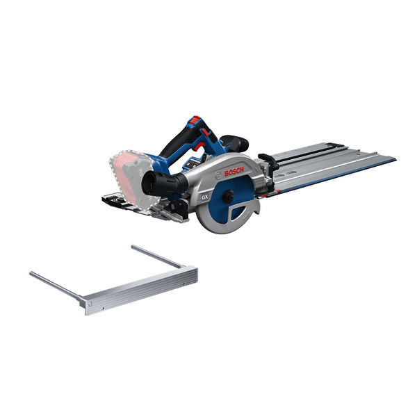 Akku-Kreissäge GKS 18V-57-2 GX, Bei Tischler- und Dachdeckarbeiten oder beim Holzrahmenbau ist eine kraftvolle Kreissäge erforderlich, die genaue Winkelschnitte in allen Positionen durchführt und mit Führungsschienen kompatibel ist. Die präzise Akku-Kreissäge GKS 18V-57-2 GX Professional ist das perfekte Werkzeug hierfür. Diese Säge mit hohem Anwendungskomfort bietet eine Schnitttiefe von bis zu 57 mm und kann Neigungsschnitte bis 50° ausführen. Und sie eignet sich für viele Einsatzbereiche in Kombination mit der Bosch Führungsschiene FSN und dem Führungsschienensystem für Querschnitte FSN X, durch das sie zu einer mobilen Säge für Querschnitte wird. Die GKS 18V-57-2 GX Professional liefert mit ihrem robusten, bürstenlosen Motor maximale Power. Diese Akku-Kreissäge ist ideal zum Schneiden von Holz- oder Holzverbundwerkstoffen in Balken, Fensterrahmen, kleinen Platten für Böden, Decken, Verkleidungen, Wandrahmen und mehr. Sie eignet sich außerdem zum Zuschneiden von Dämmmaterial und ist kompatibel mit der Bosch Führungsschiene und dem Führungsschienensystem für Querschnitte. Dank integriertem Click & Clean-Adapter, der mit allen Saugsystemen kompatibel ist, lässt sich Staub mühelos sammeln. Kompatibel mit dem Bosch Professional 18V System und mit der markenübergreifenden AMPShare Akku-Allianz. Für maximale Leistung einen ProCORE18V ? 5,5 Ah verwenden. Die GKS 18V-57-2 GX Professional ist mit Stop Control ausgestattet, mit der das Werkzeug automatisch das Schnittende erkennt und sich abschaltet, und sie verfügt über Drehzahlanpassung, ECO-Modus, KickBack Control und Überhitzungsschutz. Das flexible Sägeblatt ist ideal für wandnahes Schneiden und ein LED-Licht beleuchtet hell die Schnittlinie. Karton. Parallelanschlag (2 608 000 894)