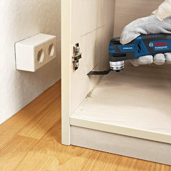 Akku-Multi-Cutter GOP 12V-28, Dieses Akku-Multifunktionswerkzeug ist die kompakteste Lösung im Bosch Starlock Segment. Seine einzigartige Starlock-Schnittstelle mit einer optimierten dreidimensionalen Kraftschlussverbindung zwischen Maschine und Zubehör sorgt für eine größtmögliche Kraftübertragung und damit für einen schnelleren Arbeitsfortschritt. Dank kleinstem Griffumfang ist dieses Multifunktionswerkzeug sehr ergonomisch und benutzerfreundlich. Darüber hinaus sorgt das geringe Gewicht für einen hohen Bedienkomfort und eine einfache Handhabung. Dieses Elektrowerkzeug eignet sich für Trockenbau-, Kücheneinbau- sowie Schleifarbeiten. Es kann für Holz, Plastik und Metall eingesetzt werden. Es ist kompatibel mit dem Starlock-System. Dieses Multifunktionswerkzeug verfügt außerdem über Funktionen wie konstante Drehzahl, eine Magnethalterung, Softgrip und Drehzahlvorwahl. 1 x Starlock BIM Tauchsägeblatt AIZ 32 APB, Wood + Metal, Curved-Tec (2 608 661 644). L-BOXX 102 (1 600 A01 2FZ)