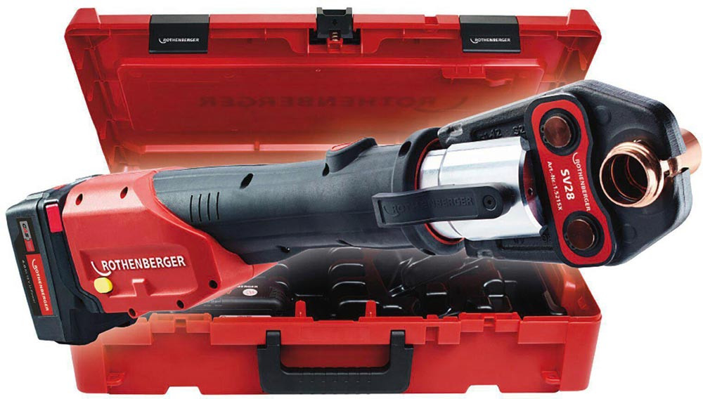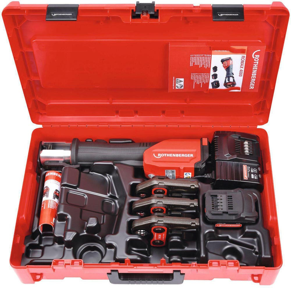 Akku-Pressmaschine ROMAX 4000 Basic Set CAS Akku, Ladegerät, SV 15, 22, 28 mm 4 Ah 32 - 34 kN 12 - 110 mm