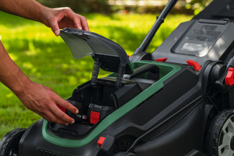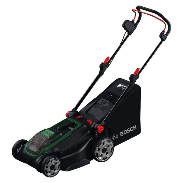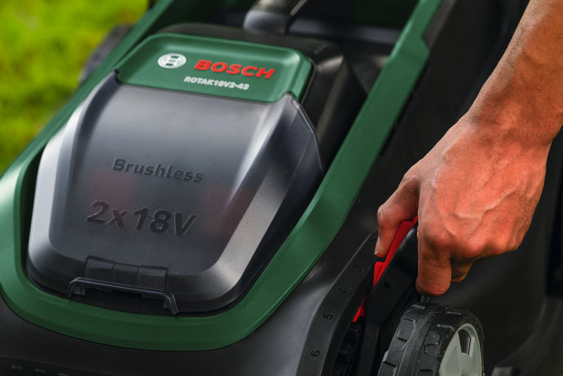 Akku-Rasenmäher ROTAK18V2-43. Kraftvoller 3-in-1-Mäher mit 43-cm-Messer für mittelgroße bis größere Rasenflächen. 2 x 18V-Akkus liefern die Kraft eines 36V-Systems und sorgen für eine längere Laufzeit. Bürstenloser Motor für hervorragende Leistung und eine längere Lebensdauer. Magnetisch gehaltenes Ablenkblech für die einhändige Entleerung des Grasfangkorbs. Klappbarer Teleskopgriff und vertikale Lagerung für die platzsparende Aufbewahrung. 6-stufige, zentrale Schnitthöhenverstellung (30-75 mm). Syneon-Technologie für optimale Laufzeit und Langlebigkeit des Werkzeugs. POWER FOR ALL ALLIANCE: 1 Akku, 10+ Marken, 150+ Produkte. Kartonschachtel. 2 x Akku PBA 18V 4.0Ah (1 600 A01 1T8). Ladegerät AL 2x18V-88 (2 607 226 786)