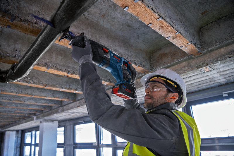 Akku-Säbelsäge BITURBO GSA 18V-28, Dank der neuen Brushless-Technologie bietet dieses Gerät maximale kabelfreie Schnittleistung, die der einer kabelgebundenen 1.100-W-Säbelsäge entspricht. Der werkzeuglose SDS-Sägeblattwechsel erlaubt leichtes, einhändiges Einführen und Entnehmen des Sägeblatts. Diese Akku-Säbelsäge bietet ein ausgezeichnetes Verhältnis zwischen Leistung und Gewicht, deshalb ist das Arbeiten mit ihr in jeder Position einfacher und ermüdungsfreier. Dieses Gerät ist ideal für Abrissarbeiten mit verschiedenen Materialien wie Metall, Holz, Kunststoff und Dämmmaterialien. Sie ist kompatibel mit dem Bosch Professional 18V System. Auch kompatibel mit AMPShare, der markenübergreifenden Akku-Allianz. Diese Akku-Säbelsäge hat die perfekte Bauweise für wandnahe, von oben ausgeführte Schnitte. Ihr ergonomisches Design beinhaltet einen gebogenen oberen Griffteil, der mehrere Greifpositionen bequem ermöglicht. Die Hubzahl lässt sich einfach und stufenlos über den Ein-/Aus-Schalter einstellen. Die Säbelsäge ist ausgestattet mit einem einhängbaren Aufhängehaken für ausbalanciertes Aufhängen des Werkzeugs. L-BOXX 238 (1 600 A01 2G2). 1 x Säbelsägeblatt S 2345 X, Progressor for Wood (separat erhältlich als 2er-Pack: 2 608 654 403). 1 x Säbelsägeblatt S 123 XF, Progressor for Metal (separat erhältlich als 2er-Pack: 2 608 654 416)