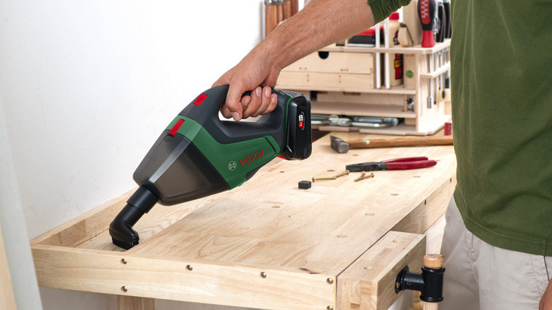 Akku-Sauger UniversalVac 18. Der vielseitige Akku-Sauger mit hoher Saugleistung. Mobil und leistungsstark für die Beseitigung auch von schwererem Schmutz. Bequeme Bodenreinigung dank Verlängerungsrohr und Bodendüse. Die Fugendüse ist ideal für enge Bereiche. Die Bürstendüse reinigt verschiedene Oberflächen, z. B. Textilien. 18-Volt-Akku für kabellose Freiheit und eine starke Saugleistung. POWER FOR ALL: Ein Akku für das komplette Home & Garden-Gerätesystem. Bürstendüse (1 619 PA9 896). Fugendüse (1 619 PA9 897). Bodendüse (1 619 PA9 899). 2 Verlängerungsrohre (1 619 PA9 898). Filtereinheit (2 609 256 F44). Zubehörhalterung (1 619 PA9 901). Karton