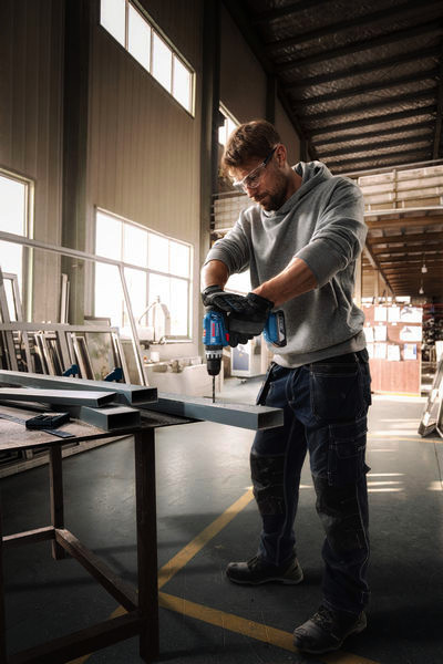 Akku-Schlagbohrschauber GSB 18V-25, Mit seinem 18V Motor bietet Ihnen der Bosch GSB 18V-25 Professional die nötige Leistung, wo und wann immer Sie dies wünschen. Dieses vielseitige Akku-Werkzeug ist nicht nur zum Schrauben in Holz, sondern auch zum Bohren in Mauerwerk und Metall geeignet. Mit seinen verschiedenen Funktionen überzeugt es durch Exzellenz: Sie verhindern Überhitzung oder zu starke Aufladung, sorgen für eine längere Akkulebensdauer und weniger Zeitverluste durch Reparaturen. Der GSB 18V-25 Professional ist mit allen Bosch Professional 18V Akkus und Ladegeräten kompatibel und bietet dadurch eine noch höhere Effizienz und Wirtschaftlichkeit. Der leistungsstarke und vielseitige Bosch GSB 18V-25 Professional ist zum Eindrehen von Schrauben mit bis zu 10 mm Durchmesser in Holz und zum Bohren mit einem Durchmesser von bis zu 35 mm in Holz und bis zu 10 mm in Mauerwerk und Metall geeignet. Durch seine einfache Bedienung ist er ideal für professionelle Handwerker. Karton