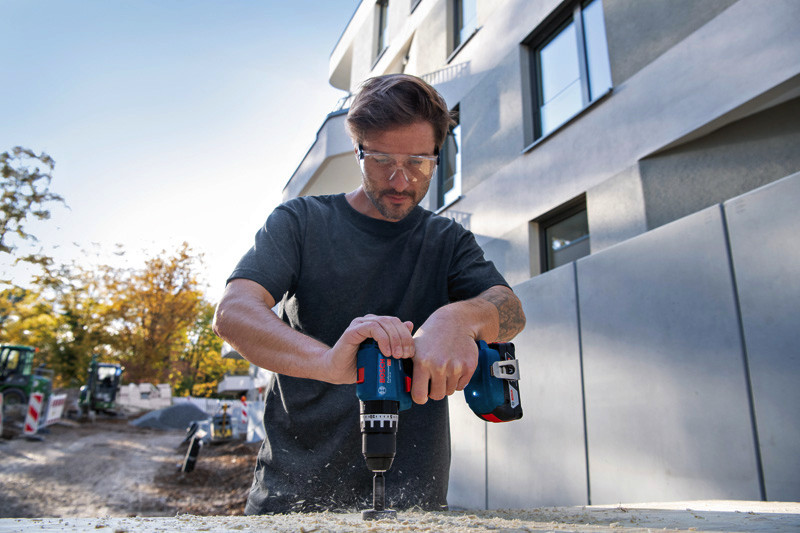 Akku-Schlagbohrschauber GSB 18V-45, Der kompakte und leistungsstarke Bohrschrauber drejt Schrauben bis 10 mm in Holz und bohrt in Holz bis 35 mm tief sowie in Metall oder Mauerwerk bis zu 10 mm. Ideal für Gewerbetreibende und Handwerker, die bei anspruchsvollen Arbeiten und an schwer zugänglichen Stellen eine höhere Leistung benötigen. Mehr Arbeit, keine Grenzen Karton