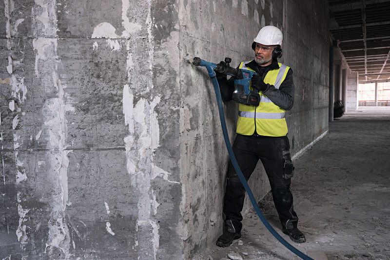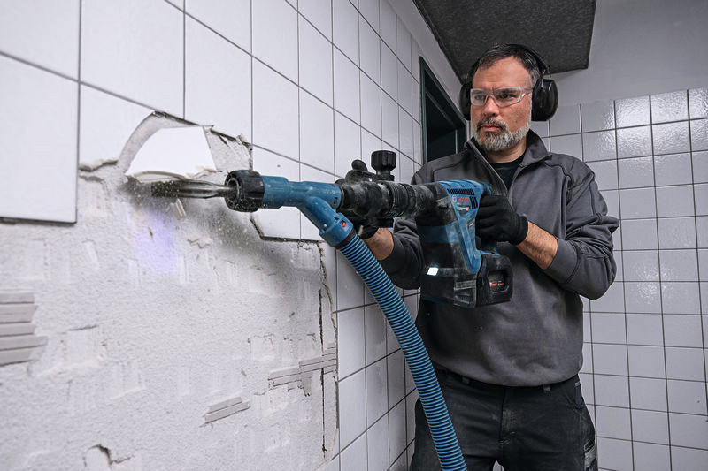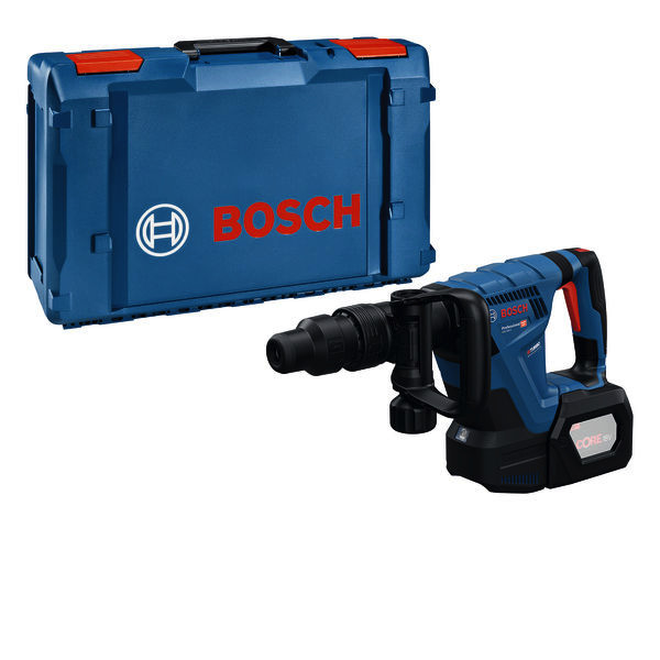 Akku-Schlaghammer mit SDS max GSH 18V-5, Die Arbeit mit großen Abbruchwerkzeugen ist schwer, insbesondere bei Arbeiten über Kopf oder in engen Räumen. Deshalb haben wir das GSH 18V-5 Professional entwickelt. Er bietet reduzierte Ermüdung und kabellose Freiheit mit einer kabelgebundenen Leistung von 8,5 J dank Brushless-Technologie. Dieses leichte und kompakte Gerät ist aufgrund seines effizienten Leistungsgewichts, des hochoptimierten Antriebsstrangs und des leistungsstarken Schlagwerks ideal für alle Arbeitspositionen. Darüber hinaus hast du mehr Kontrolle mit dem Soft-Start-Modus / Adaptive Speed Control (ASC) für präzises Meißeln und der Verriegelungstaste für kontinuierliches Arbeiten. Der GSH 18V-5 Professional eignet sich für Meißel-, Abbruch- oder Korrekturarbeiten, zum Entfernen von Fliesen, für Durchbrüche und zum Herstellen von Rinnen in Beton, Mauerwerk und Ziegeln. Es ist kompatibel mit dem Bosch Professional 18V System und mit der markenübergreifenden AMPShare Akku-Allianz. (Für maximale Leistung: ProCORE18V ? 5,5 Ah). Das Gerät hat außerdem zwei verschiedene Arbeitsmodi über eine einfache Benutzeroberfläche, Vario-Lock und eine LED-Arbeitsleuchte. 1 x XL-BOXX (1 605 438 1L9)