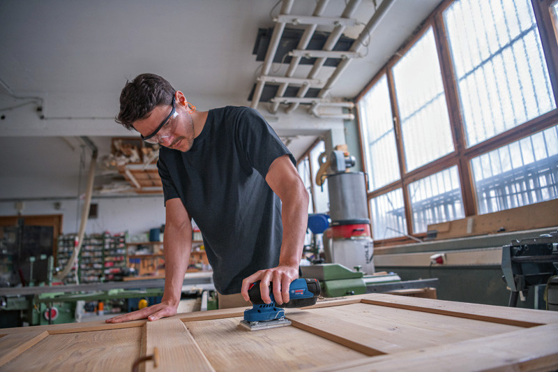 Akku-Schwingschleifer GSS 12V-13, Der GSS 12V-13 Professional ist der ideale Begleiter für Anwender, die immer unterwegs sind. Er bietet eine ausgezeichnete Werkzeugbalance mit Schwerpunktlage nahe am Werkstück und eine hervorragende Ergonomie von Handablage und Griff. Seine schmale 12V-Bauweise sorgt für die erforderliche Kompaktheit für alle schwer erreichbaren Stellen. Dank seines intuitiven Bedienkonzepts und des Systems mit austauschbaren Schleifplatten ist er leicht in der Handhabung. Der GSS 12V-13 Professional ist ideal zum einfachen Schleifen und Zwischenschleifen, Entfernen von Lack und Feinschleifen. Er eignet sich für Holz, Furnier, Lack, Füllstoffe, Mineralstoffe und Acryl. Er ist mit dem Bosch Click & Clean System und dem Professional 12V System kompatibel. Mit Drehzahlvorwahl, Akkustatusanzeige, Staubbeutel und austauschbaren Schleifplatten in drei verschiedenen Größen mit Klettsystem zur Schleifblattbefestigung. L-BOXX 136 (1 600 A01 2G0). Staubbeutel (2 608 000 715). Grundplatte, 80 x 130 mm (2 608 601 447) mit Schleifplatte (2 608 601 444). (Delta) Grundplatte, 100 x 150 mm (2 608 601 448) mit Schleifplatte (2 608 601 445). Grundplatte, 113 x 101 mm (2 608 601 446) mit Schleifplatte (2 608 601 443). 1 x Schleifblatt C470, Best for Wood + Paint, 120 (separat erhältlich als 10er-Pack: 2 608 607 232). 1 x Schleifblatt C470, Best for Wood + Paint, 120 (separat erhältlich als 10er-Pack: 2 608 607 458). 1 x Schleifblatt C470, Best for Wood + Paint, 120 (separat erhältlich als 10er-Pack: 2 608 901 117). Lochwerkzeug (2 608 000 652)