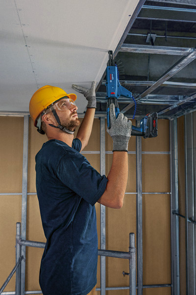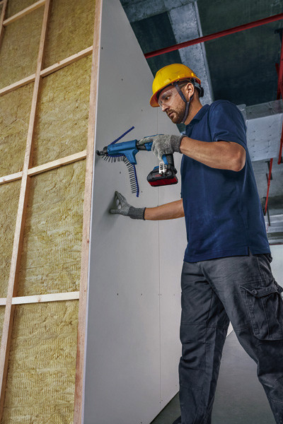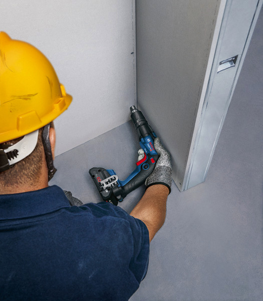 Akku-Trockenbauschrauber GTB 18V-45, Dieser Schrauber mit einer Ausgangsdrehzahl von 4.500 min-1 ist ideal für die effiziente Trockenbaumontage und das präzise Eindrehen von Trockenbauschrauben mit einem Durchmesser von bis zu 4,2 mm in Gipskartonplatten mit 0,5 mm leichtem Stahl. Komfortable Handhabung für den ganzen Tag Er ist ausgestattet mit Electronic Motor Protection (EMP), Motorbremse, Arretierschalter, Gürtelclip und Rechts-/Linkslauf. L-BOXX 136 (1 600 A01 2G0). 1 x Schraubendrehereinsatz (Bit) Ph 2. 1 x Gürtelclip, 1 x Bithalter