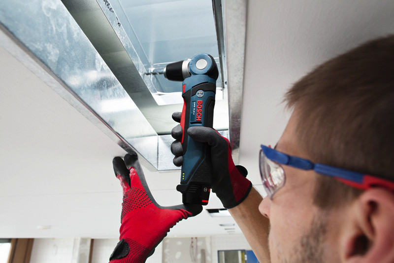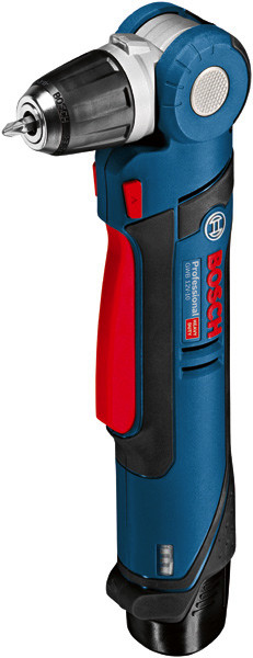 Akku-Winkelbohrmaschine GWB 12V-10, Die Akku-Winkelbohrmaschine GWB 12V-10 Professional aus der 12-Volt-Klasse von Bosch ist die kompakte Lösung für schwer zugängliche Stellen. Sie ist extrem vielseitig: Ihr Schwenkkopf mit 5 einstellbaren Positionen lässt sich an jede Arbeitssituation anpassen. Zusätzlich sorgen der schmale Handgriff mit Softgrip und der verlängerte Schalter des Gerätes für ein Maximum an Komfort und Kontrolle. Mit einem Drehzahlbereich von 0-1.300 U/min ist schneller Arbeitsfortschritt gewährleistet. Dieses Elektrowerkzeug wurde zum Bohren in Holz mit einem maximalen Durchmesser von 10 mm und für Schraubdurchmesser bis 6 mm konzipiert. Das Gerät ist mit allen Bosch Professional 12-Volt-Akkus und -Ladegeräten kompatibel (Professional 12V System). Der GWB 12V-10 Professional verfügt außerdem über Autolock, Ladezustandsanzeige, Electronic Cell Protection, Lithium-Ionen-Technologie und zwei LED-Lichter. Schnellladegerät GAL 12V-40 Professional (1 600 A01 9R3). L-BOXX 102 (1 600 A01 2FZ). 1/2 L-BOXX-Einlage für Zubehör (1 600 A00 2WY). 1/2 L-BOXX-Einlage für Gerät (1 600 A00 2W8). 2 x Akku GBA 12V 2.0Ah (1 600 Z00 02X)