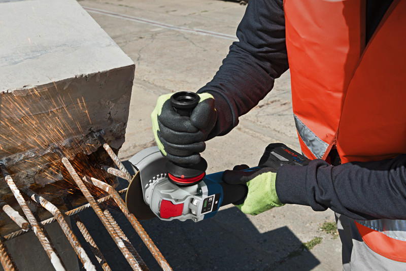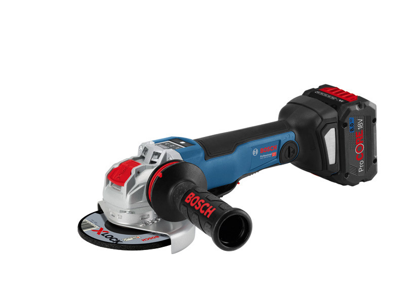 Akku-Winkelschleifer mit X-LOCK GWX 18V-10 PSC, Der kleine Akku-Winkelschleifer GWX 18V-10 PSC Professional mit X-LOCK bietet verbesserte Leistungsfähigkeit und Werkzeugkontrolle in der 18-Volt-Kategorie. Er bietet dank des bürstenlosen Motors und der ProCORE18V-Akkutechnologie dieselbe Leistung wie ein kabelgebundener Schleifer mit 1.000 Watt. Dieser kleine Winkelschleifer ist mit dem schlüssellosen Klick-System X-LOCK ausgestattet, und ermöglicht damit ein schnelles und bequemes Wechseln der Einsatzwerkzeuge. Sein Bluetooth Connectivity-Modul ermöglicht Anpassungen direkt über die Toolbox App, und ein User Interface mit Drehzahlvorwahl sorgt mit Aktivwerkzeug-Feedback für größtmöglichen Komfort. Das Werkzeug eignet sich zum Schneiden und Abschleifen von Metall, Stein und Beton. Es ist kompatibel mit den Staubabsaugvorrichtungen GDE 125 EA-T Professional und GDE 115?/?125 FC-T Professional sowie mit allen Bosch Professional 18V-Akkus und -Ladegeräten (Professional 18V System). Auch kompatibel mit AMPShare, der markenübergreifenden Akku-Allianz. Der GWX 18V-10 PSC Professional verfügt zudem über Bluetooth Connectivity und User Interface sowie PROtection Switch (Schutzschalter), X-Brake und KickBack Control. Schutzhaube (1 605 510 365). Anklippbare Trennschutzhaube aus Kunststoff (2 608 000 757). Zusatzhandgriff Vibration Control (2 602 025 171). L-BOXX 136 (1 600 A01 2G0). 1/1 L-BOXX-Einlage für Gerät und Ladegerät (1 600 A01 166)