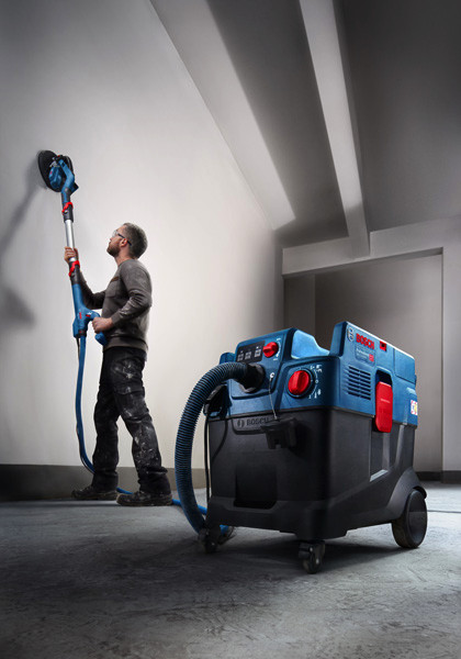 Allzwecksauger GAS 12-40 MA, Wenn bei der Arbeit feiner oder grober Staub entsteht, wird ein Sauger gebraucht, der für saubere Luft zum Atmen und eine gute Sichtbarkeit durch eine staubfreie Arbeitsfläche sorgt, ohne dass ein verstopfter Filter die Arbeit verlangsamt. Unser GAS 12-40 MA Professional bietet hohen Schutz gegen das Einatmen von Staub, indem er 99,9 % der Partikel einsaugt. Er spart außerdem Zeit, indem er den Filter dank Bosch-eigener, exklusiver automatischer Filterreinigungstechnologie (AFC) frei von Verstopfungen hält. Mit seinem starken, konstanten Luftstrom ermöglicht er einen schnelleren Arbeitsabschluss. Der Bosch GAS 12-40 MA Professional macht durch den schlauchlosen Behälter und den unabhängigen, kippsicheren Kopf auch die Staubentsorgung leichter und schneller. Für mühelosen Transport von Baustelle zu Baustelle sorgen Teleskopgriff, L-BOXX-Kompatibilität und kompakte Lagerung. Der Bosch GAS 12-40 MA Professional saugt die meisten Materialien ab, einschließlich nassen oder trockenen und feinen oder groben Staub, der beim Schneiden von Beton, Abschleifen, Sägen von Gipsplatten und Schleifen von Trockenwänden anfällt. Er bietet hohen Schutz, damit du saubere Luft einatmest, und liefert dauerhaft starke Saugkraft für hocheffiziente Staubabsaugung, so dass du die Arbeit schneller erledigen kannst. 1 x Hauptfilter (2 608 000 889). 1 x Schlauch (2 608 000 885). 1 x Kombi-PT-Adapter (2 608 000 886). 1 x Kombi-Bürstendüse (2 608 000 887). 1 x Saugrohr, gekrümmt (2 608 000 769). 1 x Vliesbeutel (2 608 000 891). 1 x Vliesbeutelhalter (2 608 001 109). 1 x Teleskopgriff (2 608 000 890)