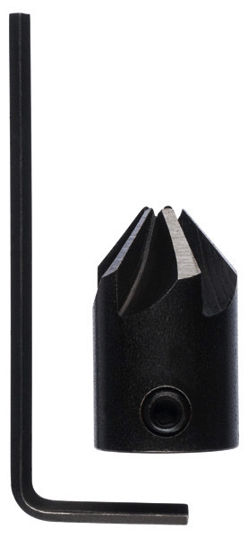 Der auf dem Aufsteckhalter montierte Senker bohrt, senkt und entgratet effizient in einem Schritt in Holz. Auf einem Holzspiralbohrer montiert können alle drei Anwendungen damit gleichzeitig und mit professionellen Ergebnissen erfolgen. Der Senker ist für hartes und weiches Holz geeignet, für laminierte und nicht laminierte Spanplatte sowie für Sperrholz. Dieser Multifunktionsbohrer aus Werkzeugstahl besitzt einen Senkwinkel von 90 Grad, fünf Schneidekanten und kann auch als Tiefenanschlag verwendet werden. Er beinhaltet einen Sechskant-Stiftschlüssel. Der Holzspiralbohrer ist nicht im Lieferumfang enthalten.