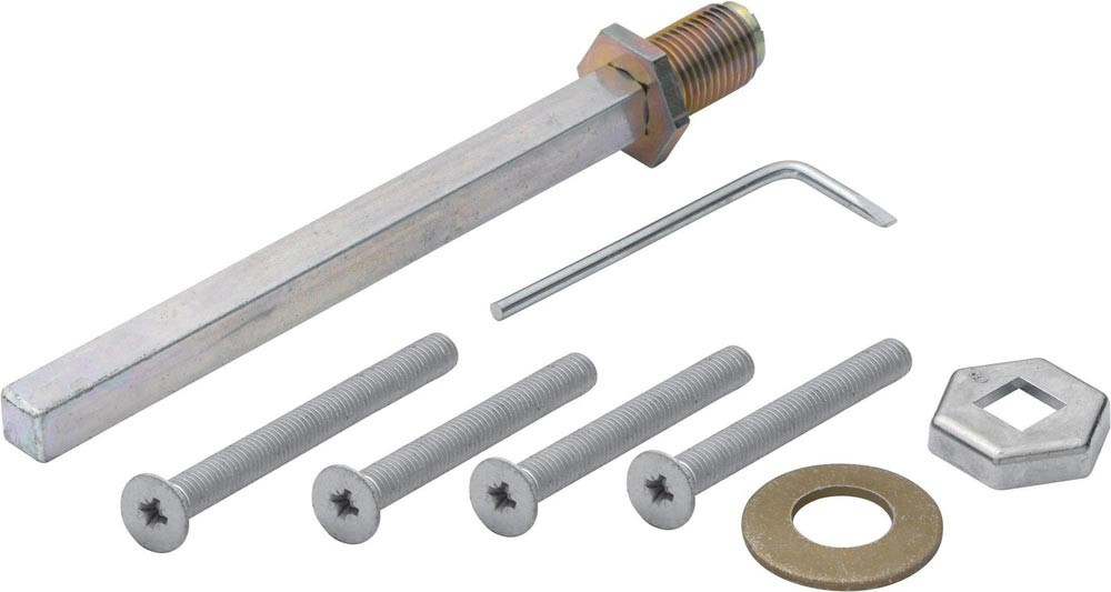 HOPPE-Befestigungs-Set: Gewindeschrauben M6 nach DIN 965-10.9 mit Kreuzschlitz-Senkkopf · HOPPE-FDW-Vollstift mit Tellerfeder · Montage-Hülse und Demontage-Schlüssel · für HOPPE-Schutz-Wechsel-Garnituren ES1/ES2 (SK2/SK3) mit HOPPE-Schnellstift · mit den Knöpfen (E)61G · (E/M)86G und den Schildern (E)2210 · (E/M)3310 · verdeckte Befestigung