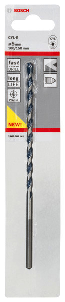 Der CYL-5-Bohrer garantiert höchste Lebensdauer beim Bohren von Beton und Stein. Die Kombination einer Bosch-eigenen Carbide-Mischung und diamantgeschliffenen Schneidekanten macht den Bohrer extrem verschleißfest. Die Reibung an der Spirale durch das Bohrmaterial wird dank eines 2-spiraligen Vario-Designs mit kurzer, variabler Neigung maßgeblich reduziert. Das Bosch Power-Grip-Schaftsystem sorgt für 100 % Kraftübertragung von der Maschine auf den Bohrer. Auf diese Weise kann die Kraftübertragung ohne Verlust und mit weniger Verschleiß direkt auf das Bohren übertragen werden. Für Dübelbohrungen in Beton, Natur- und Kunststein. Der Bohrer trägt das Qualitätstestzeichen von PGM Masonry Drill Bit Association Board, das die Konformität mit strengen Toleranzen, präzisen Bohrlöchern und einem festen Halt des Befestigungsmaterials garantiert.