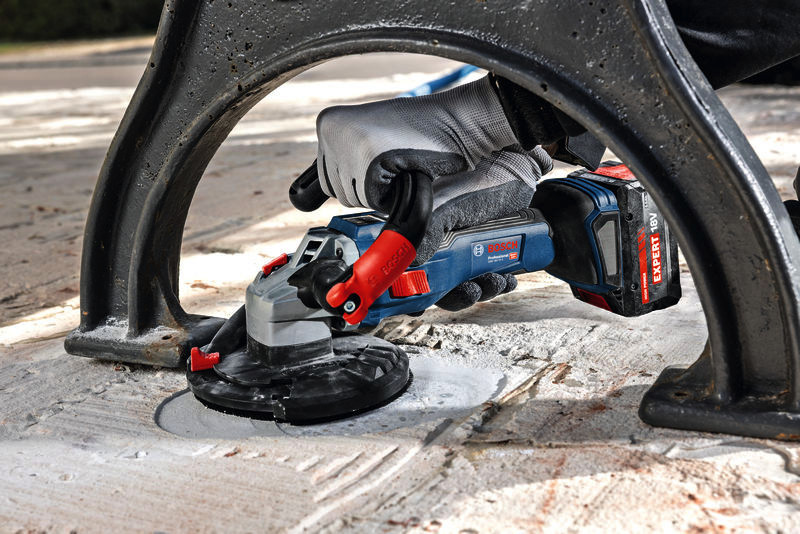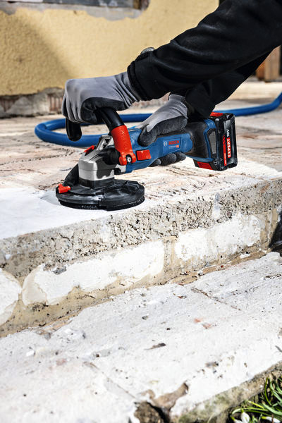Betonschleifer GBR 18V-15 S, Der Betonschleifer GBR 18V-15 S Professional von Bosch bietet kabellose Effizienz, ohne Kompromisse bei der Leistung einzugehen. Seine bürstenlose Motortechnologie sorgt für eine hervorragende Abtragsleistung. Dank des drehbaren Zusatzhandgriffs sind enge Stellen mit diesem Werkzeug leicht zu erreichen. Darüber hinaus ist bündiges Schleifen in Randnähe mit dem beweglichen Schutzhaubenelement mühelos möglich. Dieser Betonschleifer liefert dank der Drehzahleinstellung über HMI professionelle Ergebnisse auf einer Vielzahl von Materialien. Und er ist mit Funktionen wie KickBack Control, einer Auslaufbremse und Drop Control auf den Anwenderschutz ausgelegt. Der Betonschleifer Bosch GBR 18V-15 S Professional ist ideal zum Trockenschleifen, Entgraten und Glätten von Materialien wie Beton, Stein, Estrich und Marmor. Außerdem ist er zum Entfernen von Klebstoffresten und Schutzbeschichtungen auf mineralischen Untergründen geeignet. Er ist kompatibel mit 125 mm Diamant-Topfscheiben und herkömmlichen Staubsaugern und bietet dank der Click & Clean Schnittstelle eine einwandfreie Staubabsaugung. Er ist kompatibel mit dem Bosch Professional 18V System und mit der markenübergreifenden AMPShare Akku-Allianz. Der GBR 18V-15 S verfügt über eine leistungsstarke bürstenlose Motortechnologie und Funktionen wie Wiederanlaufschutz und Sanftanlauf. L-BOXX 238 (1 600 A01 2G2). Diamant-Topfscheibe, 125 mm (2 608 601 762). Zweilochmutterndreher (3 607 950 016). 1 x zweiteiliger Ersatz-Bürstenkragen (1 600 A03 HN1)