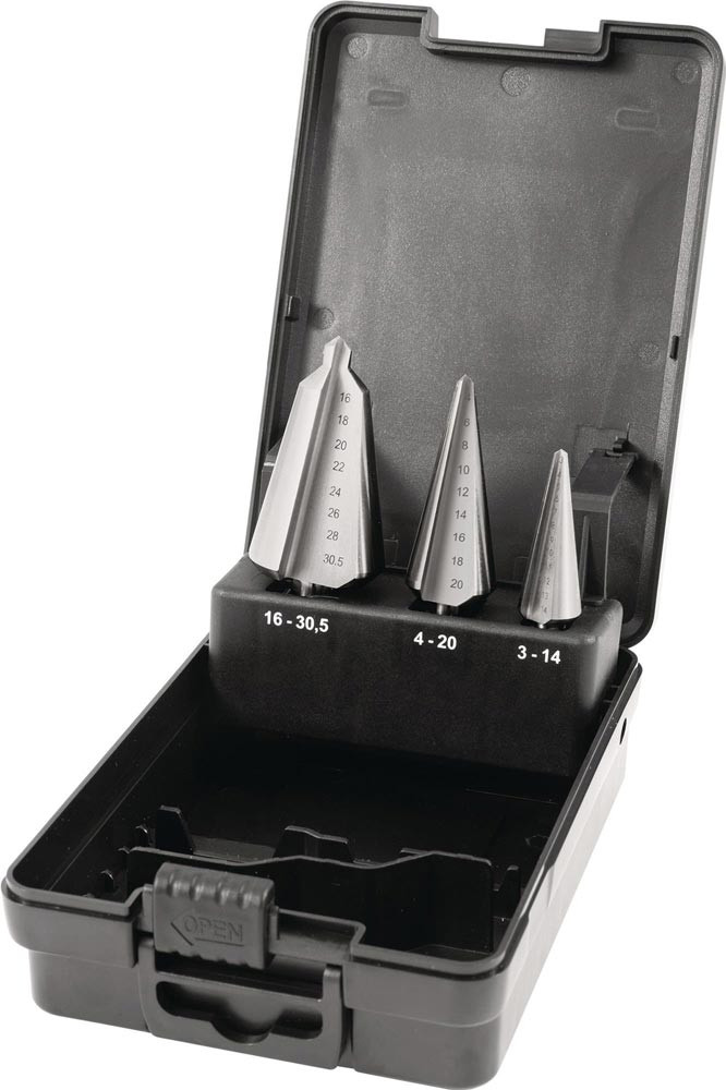 Blechschälbohrersatz 3-14/4-20/16-30,5 mm HSS 3 teilig Kunststoffkassette E6498542