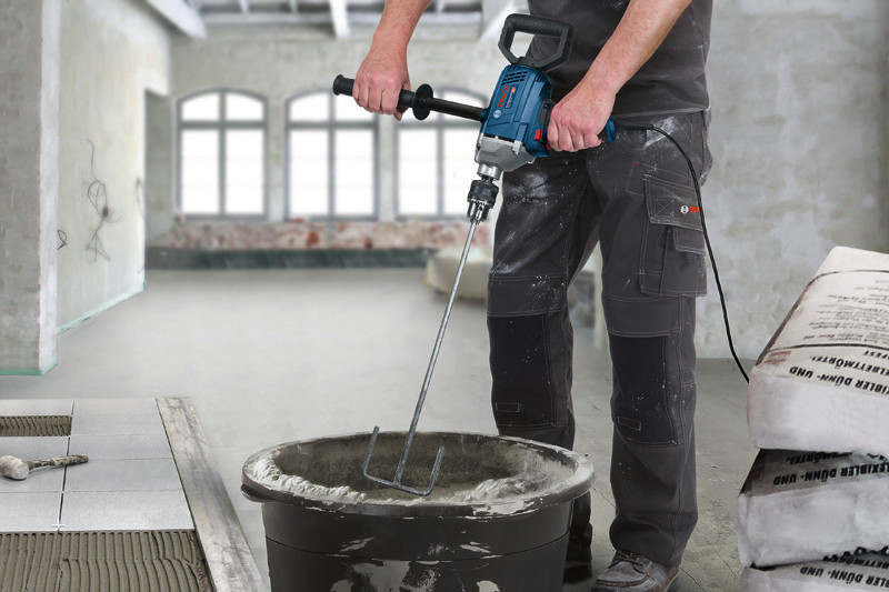 Bohrmaschine GBM 1600 RE, Die kabelgebundene GBM 1600 RE Professional ist eine vielseitige 1-Gang-Bohrmaschine für Rühr- und Bohranwendungen. Ihr kraftvoller 850-Watt-Motor ermöglicht eine hohe Arbeitsleistung. Sie verfügt über einen Zusatzgriff und einen um 360° drehbaren D-Griff für eine einfache Werkzeughandhabung in vielseitigen Anwendungen. Diese Bohrmaschine liefert ein hohes Drehmoment und sorgt für eine hervorragende Bohrleistung auch bei schweren Arbeiten. Dieses Elektrowerkzeug eignet sich für Bohrarbeiten in Metall und Holz. Es ist kompatibel mit verschiedenen Rührkörben bis zu einem Durchmesser von 160 mm. Die GBM 1600 RE Professional verfügt über Rechts-/Links-Lauf. Zusatzhandgriff. Bohrfutterschlüssel (1 607 950 041). Zahnkranzbohrfutter 16 mm