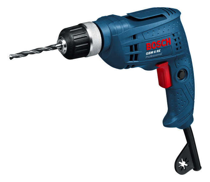 Bohrmaschine GBM 6 RE, Die kabelgebundene GBM 6 RE Professional ist eine 1-Gang-Bohrmaschine für Präzisionsbohrungen. Durch ihren zuverlässigen 350-Watt-Motor und die sehr hohe Drehzahl ist sie ideal für Bohrungen mit kleinem Durchmesser. Das leichte und kompakte Gehäuse dieser Bohrmaschine sorgt für Komfort bei der Handhabung, insbesondere bei dauerhaften Bohranwendungen. Darüber hinaus ist die Spindel dieses speziellen Bohrers in den Lagern fixiert. Dies ermöglicht eine hohe Betriebsstabilität und damit ein hochpräzises Bohren. Dieses Elektrowerkzeug eignet sich für Bohrarbeiten in Metall und Holz. Außerdem verfügt die GBM 6 RE Professional über Funktionen wie Rechts-/Linkslauf und variable Drehzahlvorwahl. Schnellspannbohrfutter (ET-Nr. 2 610 910 300)