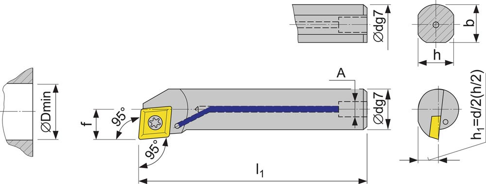 Bohrstange E12M-SCLCL 06 links VHM mit Innenkühlung