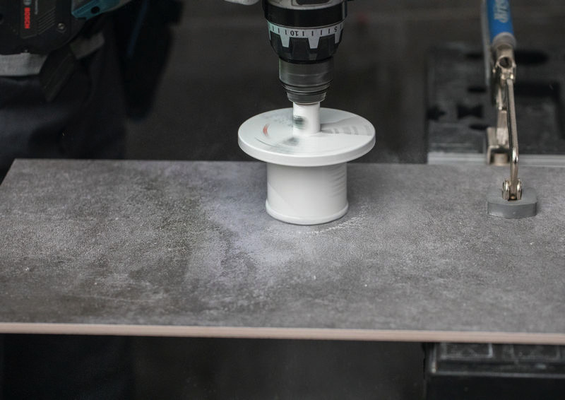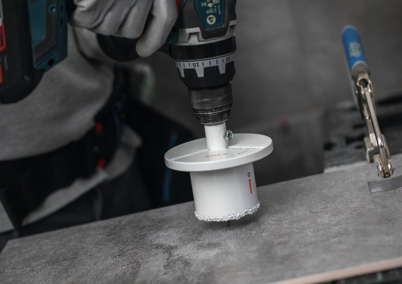 Hochwertiges Carbide-Korn für Langlebigkeit Mit unserer Lochsäge mit Adapter für Ziegelstein und weiche Fliesen schneiden Sie mühelos durch Trockenbauwände, Ziegelsteine und weiche Fliesen immer und immer wieder.