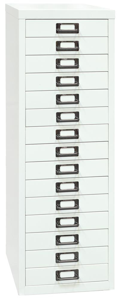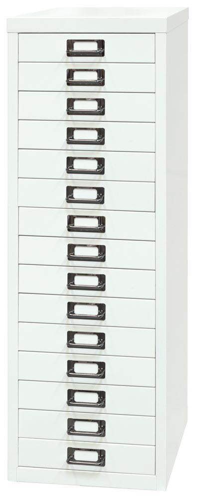 Büro-Schubladenschrank, BxTxH 279x380x860 mm, 15 Schubladen 51 mm, DIN A4, verkehrsweiß