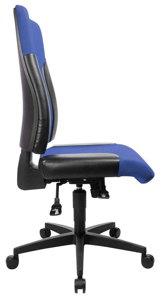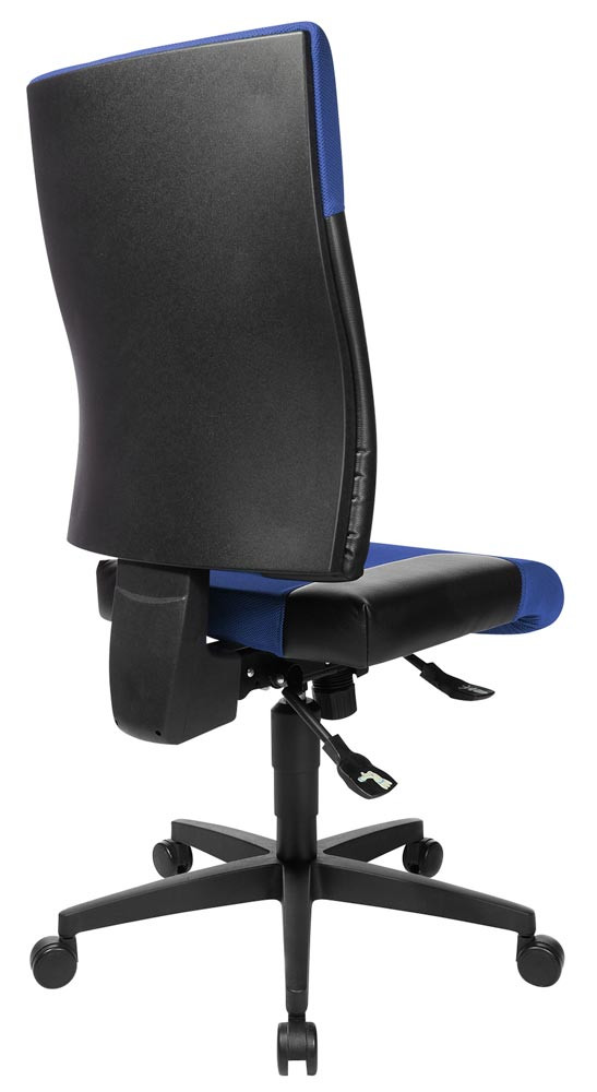 Bürodrehstuhl, Sitz-BxTxH 480x480-550x420-540 mm, Lehnenh. 580 mm, Netzrücken, seitl. Formpolster, Punkt-Synchronmech., Muldensitz, blau/schwarz