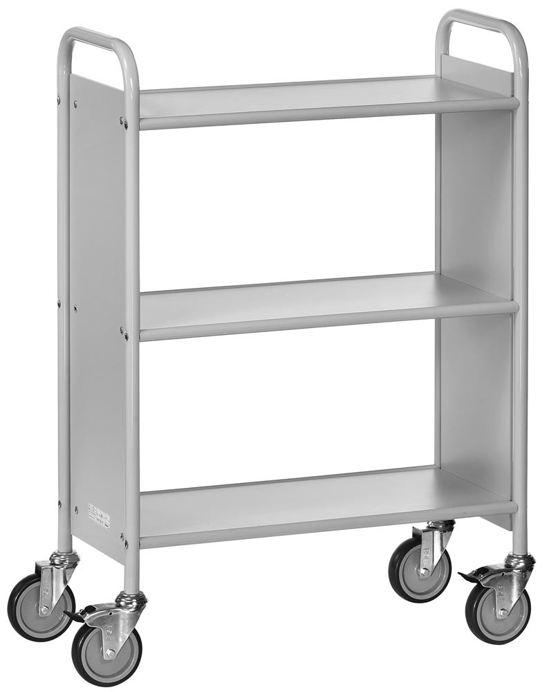 Bürowagen, 3 Böden, Seitenwände, LxBxH 810x385x1100 mm, Traglast 150 kg, lichtgrau/hellgrau
