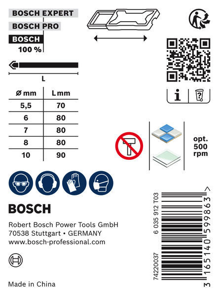 CYL-9 Ceramic dry Fliesenbohrer-Set, 5,5/6/7/8/10 mm, 5-tlg