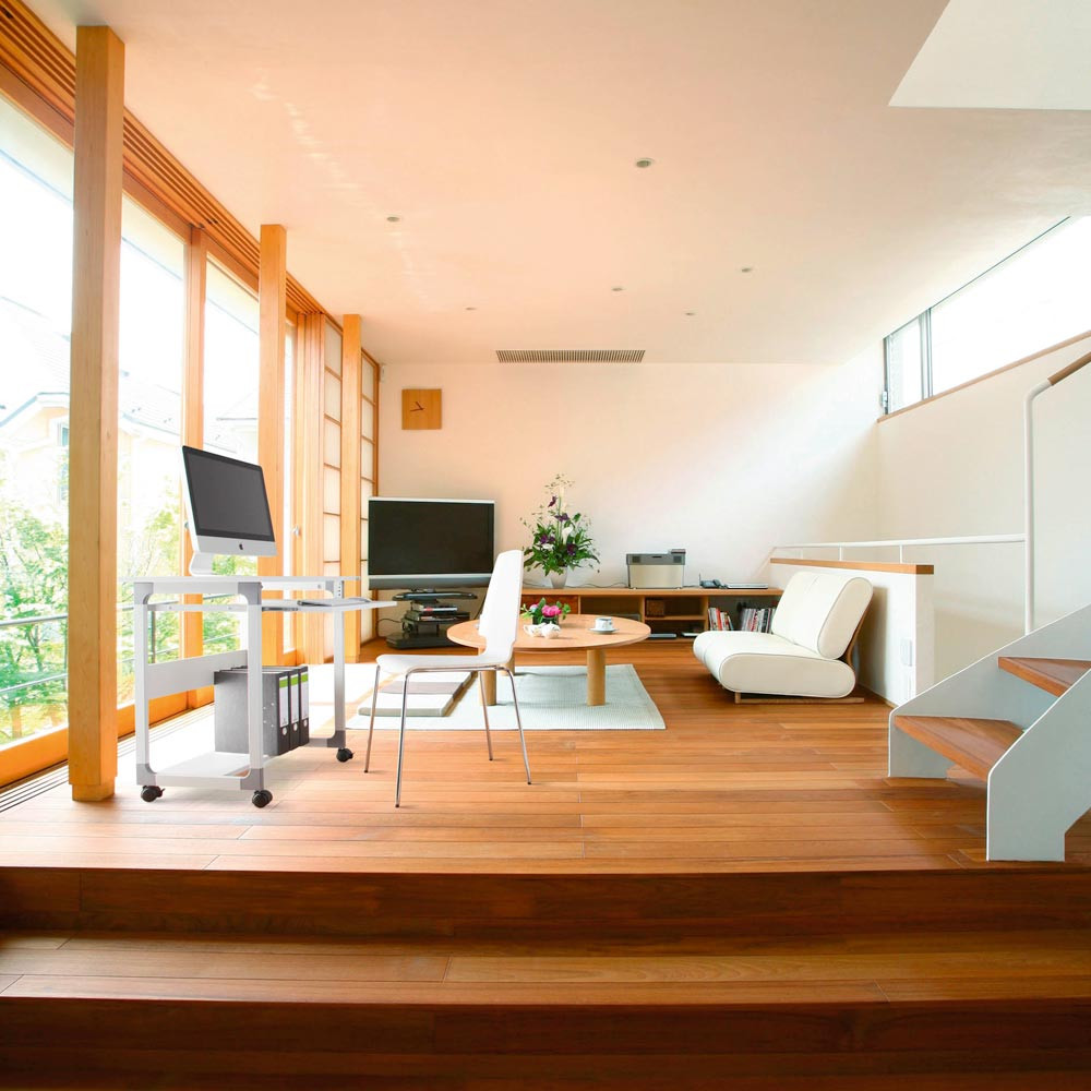 ∙ Fahrbar auf 4 Doppellaufrollen, davon 2 Rollen mit Feststeller