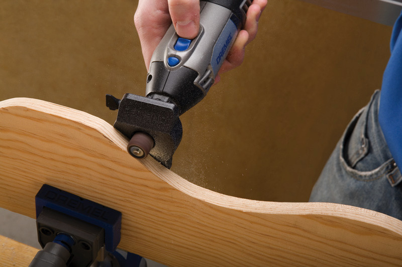 Was können Sie damit tun?. Der Dremel Modellierungstisch sorgt für mehr Präzision bei deiner Arbeit, indem du dein Dremel Multifunktionswerkzeug in einem Winkel von 45° oder 90° zum Schmirgeln, Schärfen oder Schleifen positionierst. Perfekt zur Nachbearbeitung von Schnitten mit dem enthaltenen Schleifband in Körnung 60 und dem Schleifdorn (407). Großartig zum Schärfen und Schmirgeln von Gartengeräten wie Scheren in einem sauberen 45°-Winkel mit der enthaltenen Schleifspitze (932).. Wie funktioniert es?. Setze das enthaltene Zubehör ein, ziehe es fest und schraube den Modellierungstisch mühelos auf. Stelle den Tisch auf 20 mm ein, ziehe ihn fest, und sorge für den perfekten 45°-/90°-Winkel, indem du ihn an dein Werkstück hältst. Für die besten Ergebnisse hältst du ihn am besten mit beiden Händen und lässt dein Multifunktionswerkzeug langsam an deinem Werkstück entlanggleiten, bis der Modellierungstisch und das Material aneinanderliegen.. Tipp: Verwende den Dremel 3-in-1 Multi-Schraubstock, um dein Dremel Multifunktionswerkzeug in einen Modellierungstisch für die Werkbank zu verwandeln.