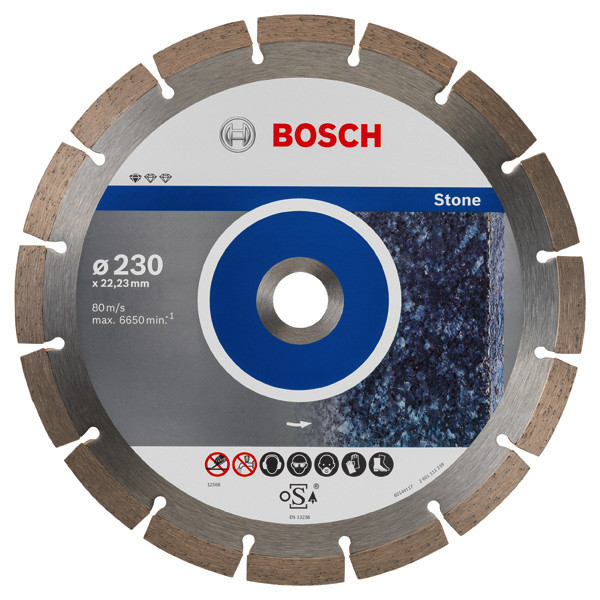 Die Diamanttrennscheibe Standard for Stone ermöglicht zuverlässiges Schneiden in Stein. Die optimierte Diamantmatrix ermöglicht zuverlässige Ergebnisse, denn das Bosch-Kompetenzzentrum Diamant in der Schweiz gewährleistet den hohen Qualitätsstandard der Scheibe. Die Scheibe ist geeignet für Stein aller Art.