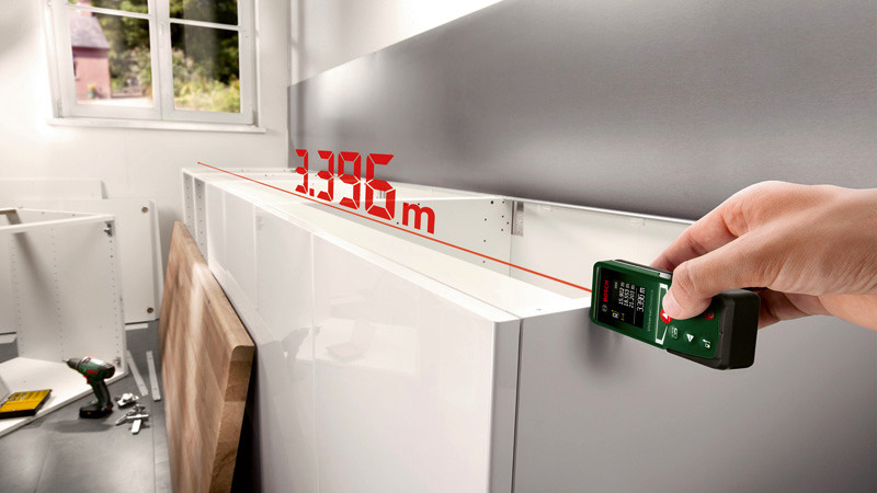Digitaler Laser-Entfernungsmesser UniversalDistance 50. Präzises Messen bis zu 50 m Länge einfach gemacht - mit allen relevanten Funktionen. Lasergenaue Messungen von Entfernungen bis zu 50 m. Integrierte Funktionen zum einfachen Ausmessen von Längen, Flächen und Volumen. Ideal zum Berechnen der Quadratmeterzahl, um die erforderliche Menge an Tapete oder Farbe zu ermitteln. Zu den Funktionen gehören Addieren/Subtrahieren, Min/Max-Messungen und 10 Speicherplätze. Hochwertiges Farbdisplay für optimale Lesbarkeit. Produkt mit Nachhaltigkeitsmerkmalen, weitere Informationen siehe unten. 2 x Batterie 1,5V LR03 (AAA). Aufbewahrungshülle. Karton