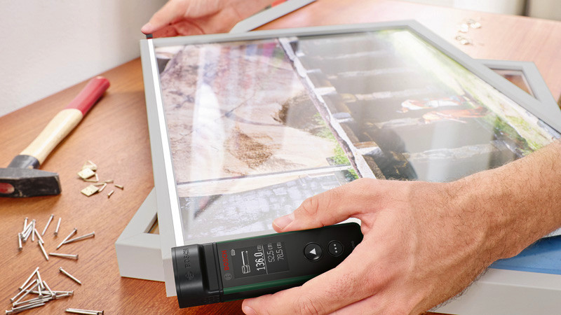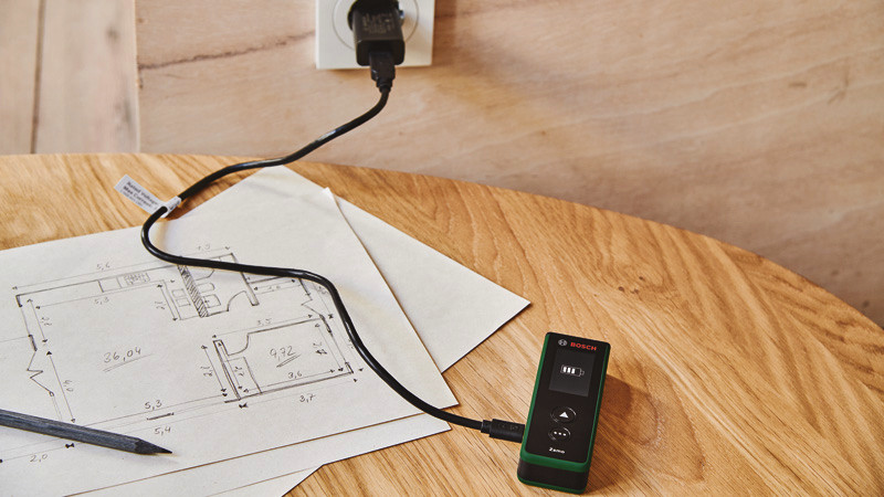 Digitaler Laser-Entfernungsmesser Zamo Set. Der Laser-Entfernungsmesser mit drei nützlichen Aufsätzen macht das Messen einfach leicht. Leichte und genaue Entfernungsmessung bis zu 25 Meter und Flächenberechnung. Mehr Messfunktionalität mit Linien-, Rad- und Band-Aufsatz. Speichert die letzten 10 Mess- und Rechenwerte. Akkuladung und Software-Updates über USB-C®-Schnittstelle. Produkt mit Nachhaltigkeitsmerkmalen, weitere Informationen siehe unten. Linien-Aufsatz. Rad-Aufsatz. Band-Aufsatz. Aufbewahrungsbox. 2 x 1,2 V HR03 (AAA), Akkus. Quick Start Manual
