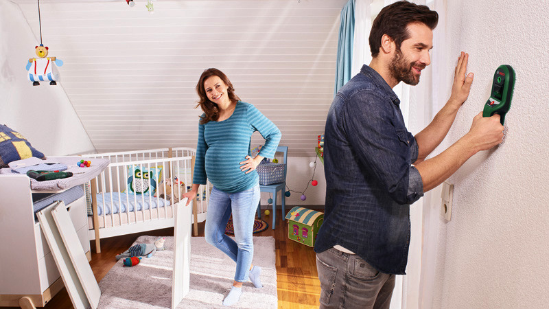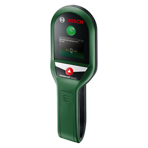 Digitales Ortungsgerät UniversalDetect. Gründliches Abscannen von Wänden für sichereres Bohren. Ortungsgerät für das schnelle Überprüfen von Wänden, Decken oder Fußböden bis 10 cm. Orten von Metallobjekten, stromführenden Leitungen und Unterkonstruktionen in Trockenbauwänden. Intuitive Nutzerführung über animierte Schritt-für-Schritt-Anleitung. LED-Ampelsystem signalisiert, wo gebohrt werden kann. Praktische Auto-Kalibrierung für direktes Starten. Produkt mit Nachhaltigkeitsmerkmalen, weitere Informationen siehe unten. 4 x Batterie 1,5V LR03 (AAA). Karton